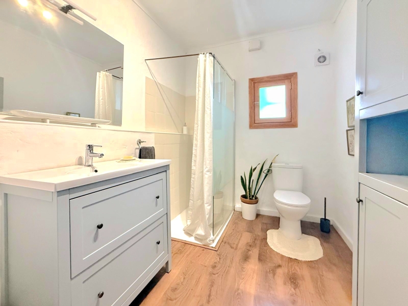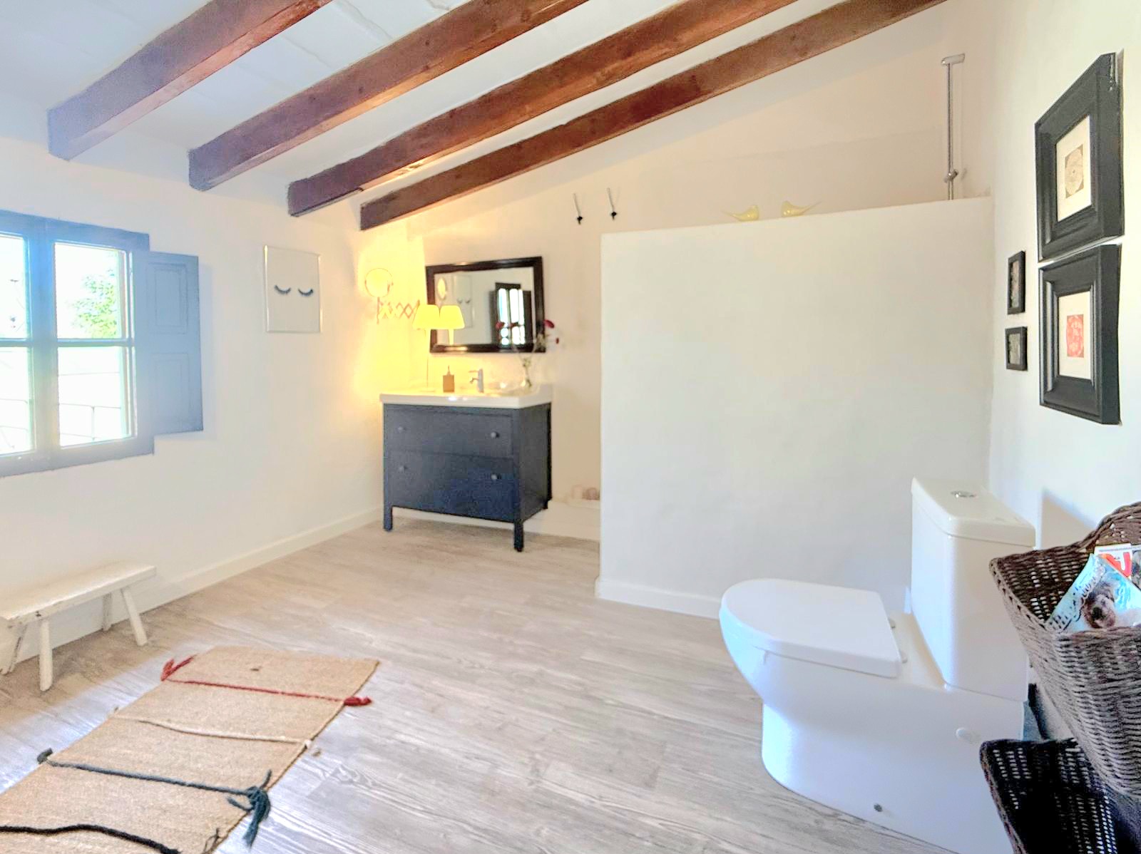 La vivienda, actualizada y muy bien cuidada, combina el carácter mallorquín con un estilo más actual, gracias a la calidez de su parqué nuevo y a detalles tradicionales como los techos con vigas vistas. Dispone de aire acondicionado en todas las estancias. En la planta baja encontramos una amplia entrada, dos habitaciones, un espacioso salón con salida a un gran porche cubierto, cocina con chimenea, baño con plato de ducha, un luminoso office y un patio interior con suelo de madera y una piscina de tamaño reducido, perfecta para refrescarse en verano. Existe además la opción de habilitar un garaje.
