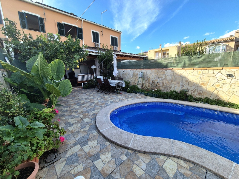 Preciosa vivienda en impecable estado, ubicada en la zona residencial de Son Rapinya, una de las áreas más demandadas de Palma por su tranquilidad, seguridad y excelente conexión con el centro de la ciudad. Dispone de una piscina privada de buenas dimensiones con agua salada, ideal para disfrutar del verano en un entorno íntimo y confortable. La casa destaca por su luminoso salón, cómodo y bien decorado, y por su habitación principal con baño en suite, ofreciendo un alto nivel de confort y funcionalidad.