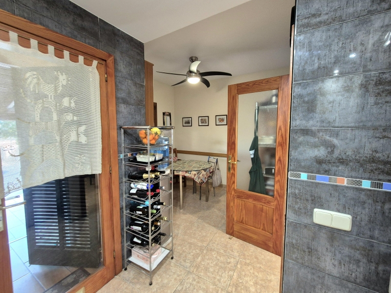 En la entrada se encuentra un patio delantero con porche. En la planta baja, la vivienda cuenta con un amplio salón, un aseo de cortesía y una cocina independiente grande con comedor, totalmente equipada, con acceso al porche cubierto y al amplio patio trasero con piscina, zona de barbacoa y trastero.