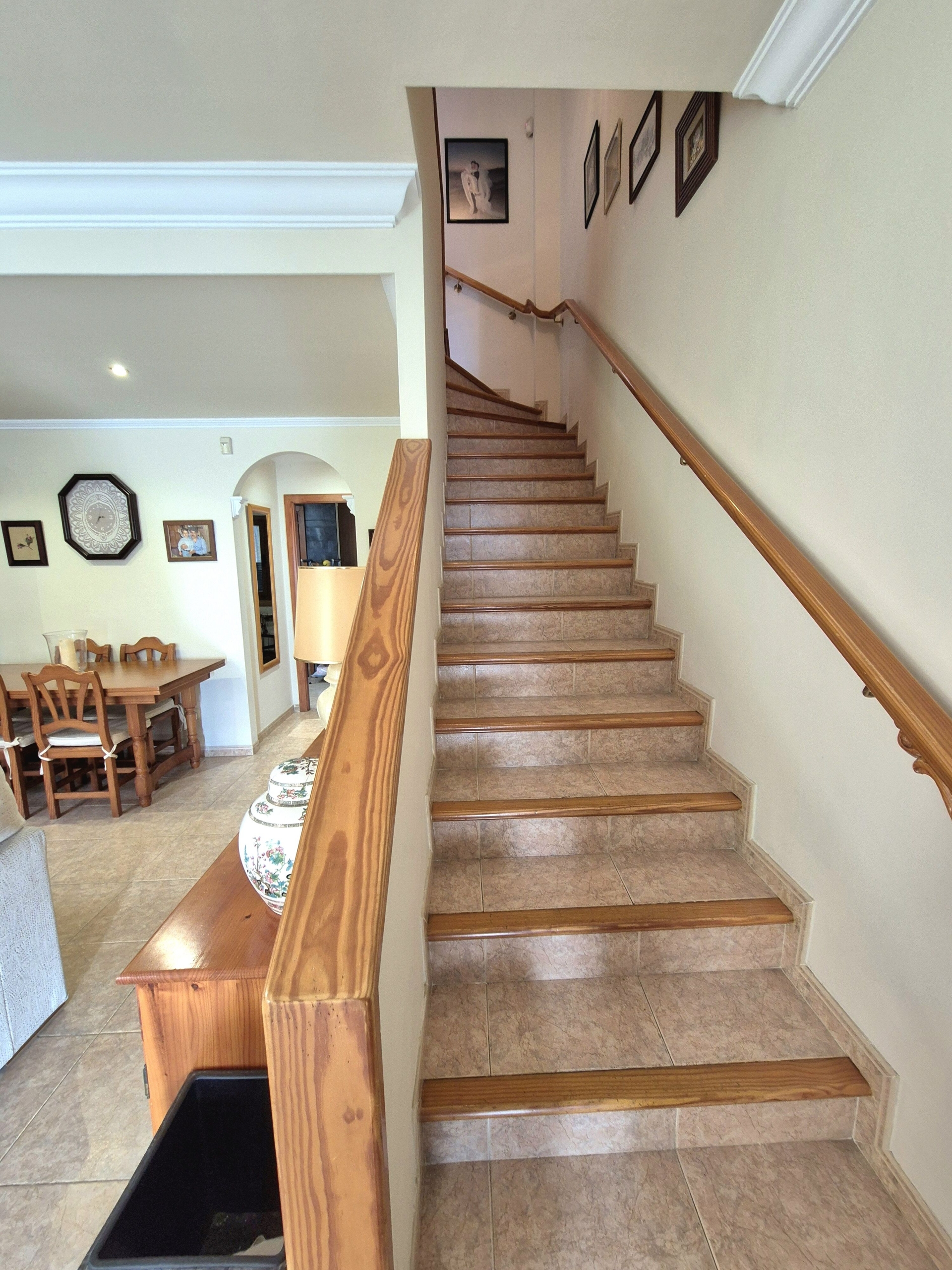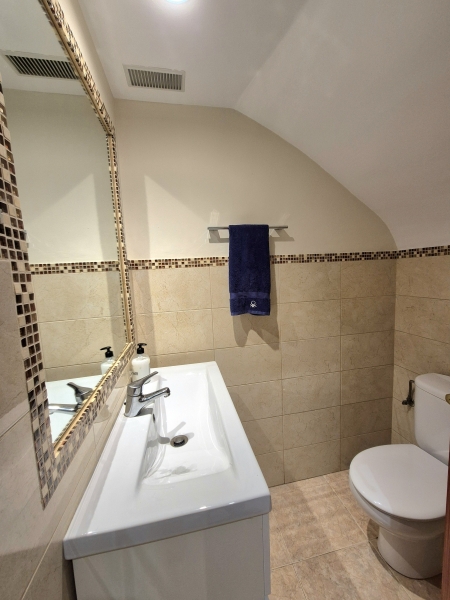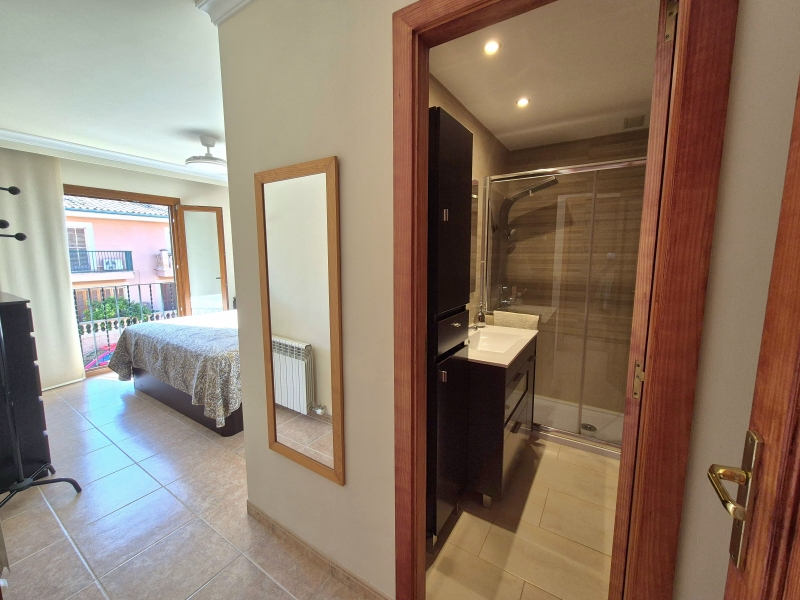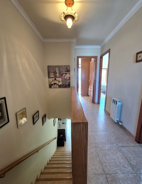 En la planta superior se distribuyen cuatro habitaciones con armarios empotrados, dos dormitorios dobles y dos individuales, uno de ellos —la habitación principal— con baño en suite con ducha, además de un segundo baño completo con bañera. Todas las habitaciones son exteriores, luminosas y bien ventiladas.